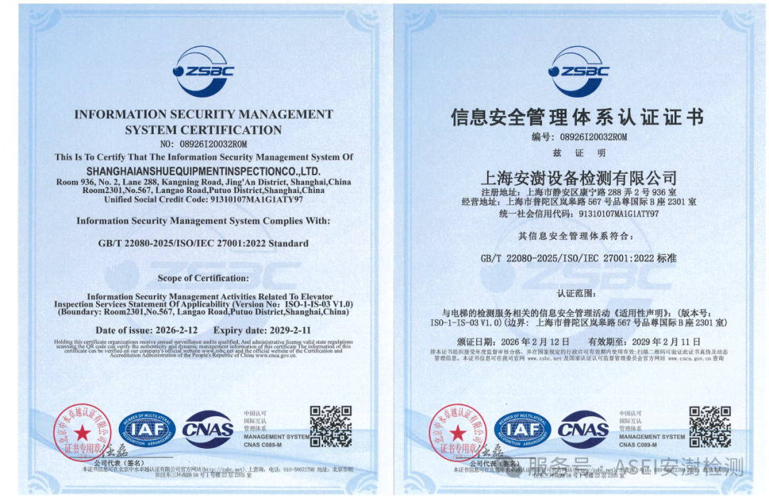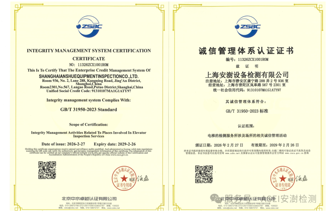 上海安澍设备检测有限公司成功获得中国合格评定国家认可委员会(CNAS)颁发的检验机构认可证书,表明其检验技术能力、管理体系及运作规范性已全面符合ISO/IEC 17020:2012国际标准及CNAS-CI01准则的A类要求。公司获认可的核心检验能力范围包括电梯安全评估、电梯安全检测及电梯维保质量检查。此次认可标志着公司管理体系有效性与技术能力获得国家权威机构的高度认可,印证了其“乘者为安,专业有澍”的质量方针。公司将以此次认可为新起点,持续遵循国际准则,深化电梯安全领域的技术与服务,以独立、公正、专业的检验评价服务,保障电梯安全运行,守护乘梯安全,推动行业健康发展。